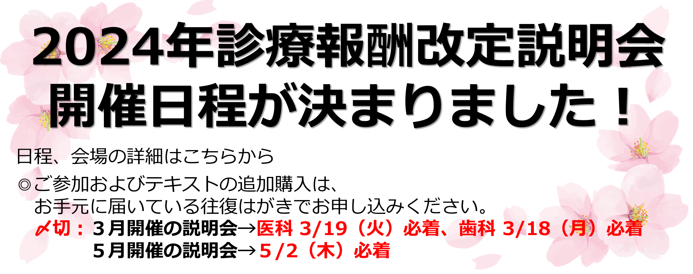 2024年診療報酬改定の説明会を下記の日程で行います。