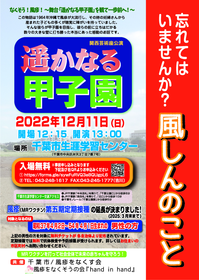 忘れていませんか?風しんのこと関西芸術座による舞台「遥かなる甲子園」を公演します!